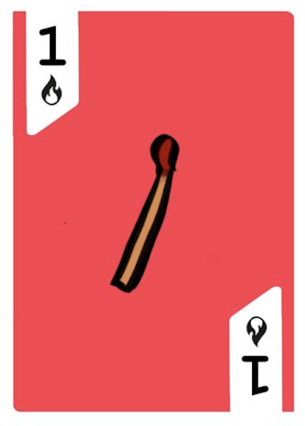 Existen dos tipos de cartas distintas que lanzar a la hoguera, las calientes indicadas con un fondo de color rojo que suman su valor al fuego y las frías, con un fondo azul que restan su valor al fuego.