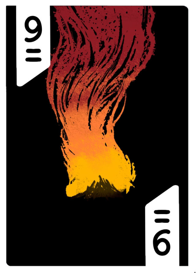 Existen dos tipos de cartas distintas que lanzar a la hoguera, las calientes indicadas con un fondo de color rojo que suman su valor al fuego y las frías, con un fondo azul que restan su valor al fuego.